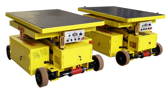 設(shè)備組成為液壓泵站驅(qū)動(dòng)的升降平臺(tái),升降平臺(tái)上工作臺(tái)面可實(shí)現(xiàn)前應(yīng)移動(dòng)及旋轉(zhuǎn),整個(gè)平臺(tái)可實(shí)現(xiàn)縱橫向的行走,由電機(jī)驅(qū)動(dòng)實(shí)現(xiàn)行走功能,可以自由運(yùn)行,即能夠?qū)崿F(xiàn)縱向、橫向。